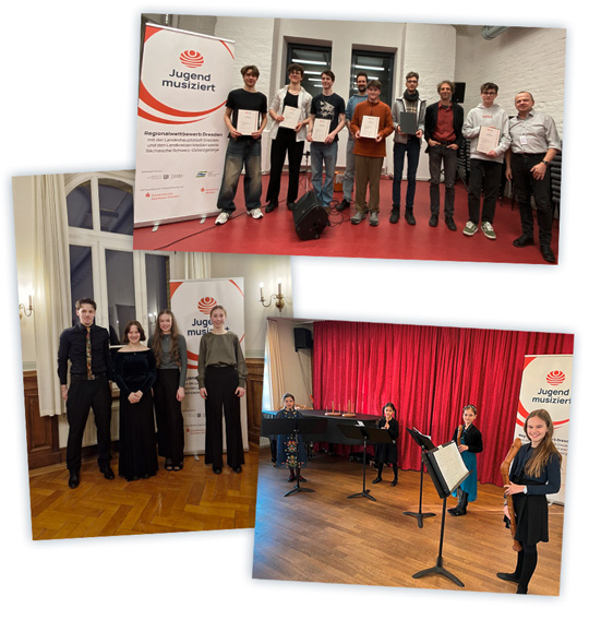 45 der 54 Wertungen erhielten einen 1. Preis; 9 Wertungen wurden mit einem 2. Preis ausgezeichnet. Außerordentliche Freude herrscht zudem über 27 Weiterleitungen zum Landeswettbewerb, der vom 13. bis 15. sowie 20. bis 22. März 2026 in Zwickau stattfindet. Ein Schüler des HSKD nahm mit seinem Ensemble am Regionalwettbewerb in Leipzig teil; auch dieses Ensemble wurde zum Landeswettbewerb delegiert.